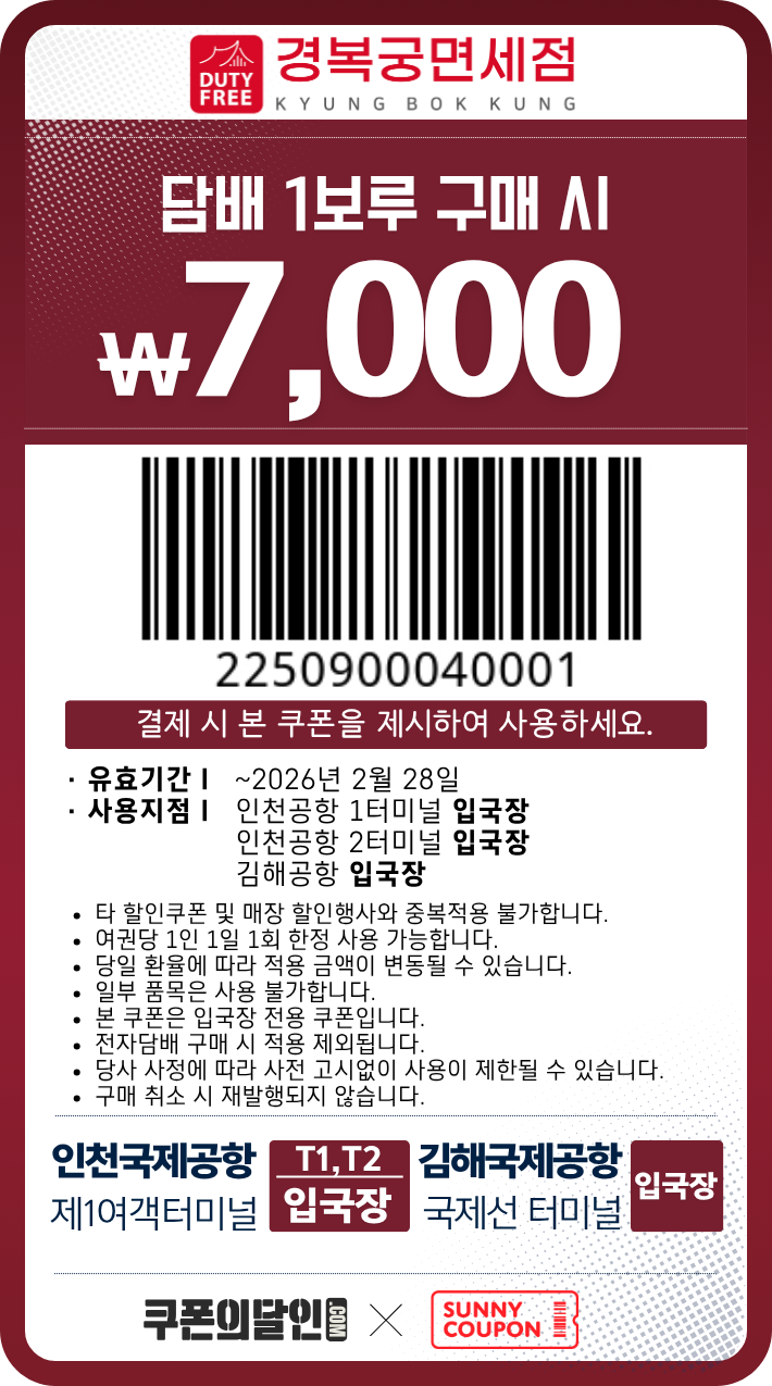 경복궁 면세점 담배 7,000원 할인쿠폰 (입국장 전용)
